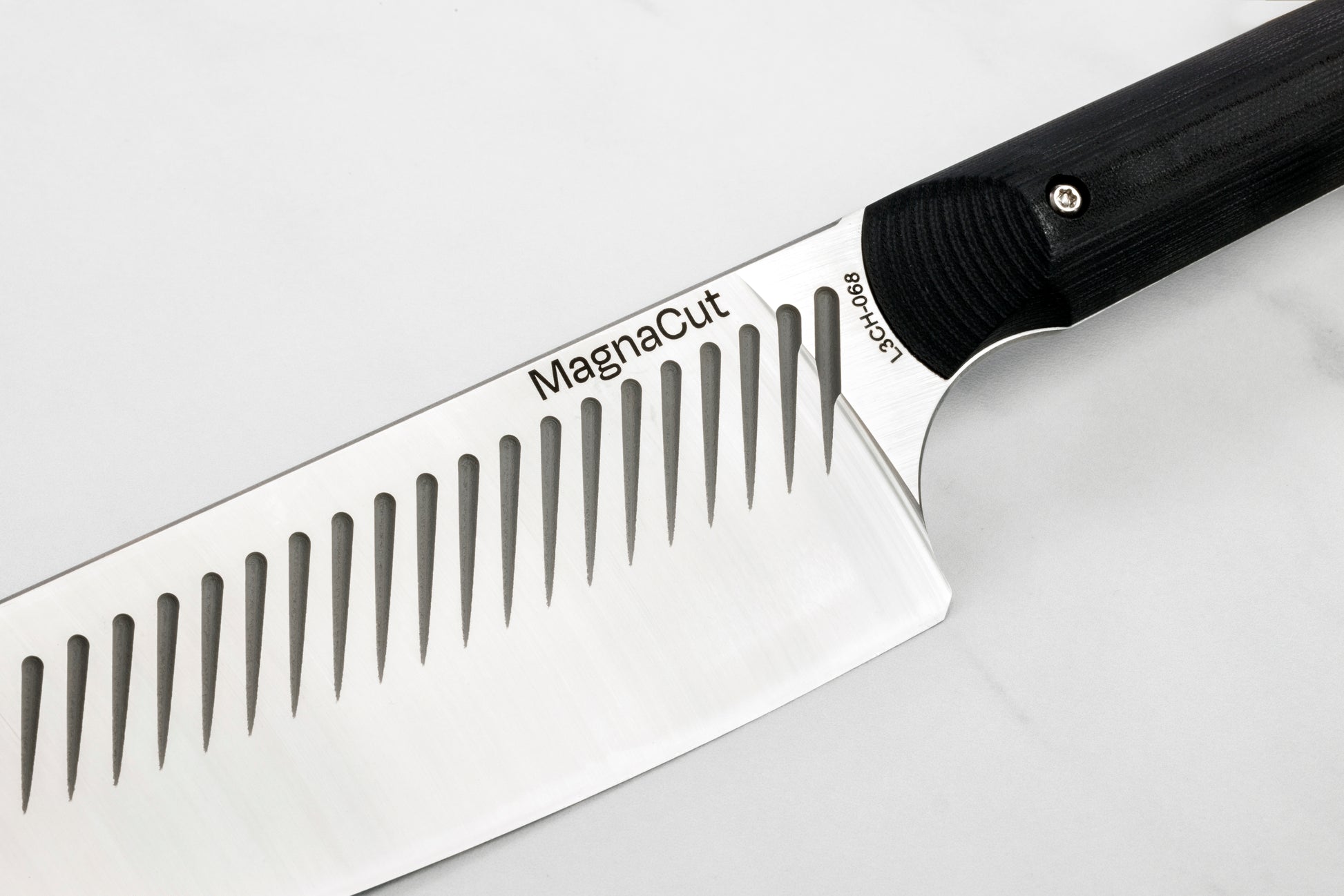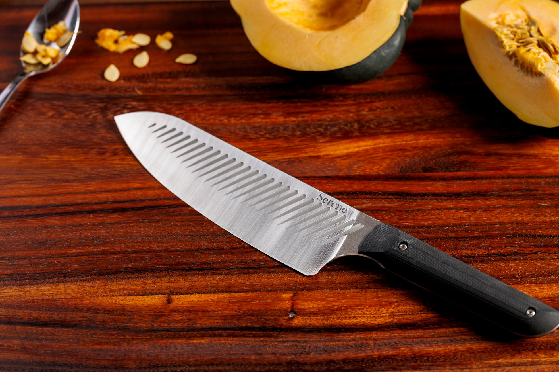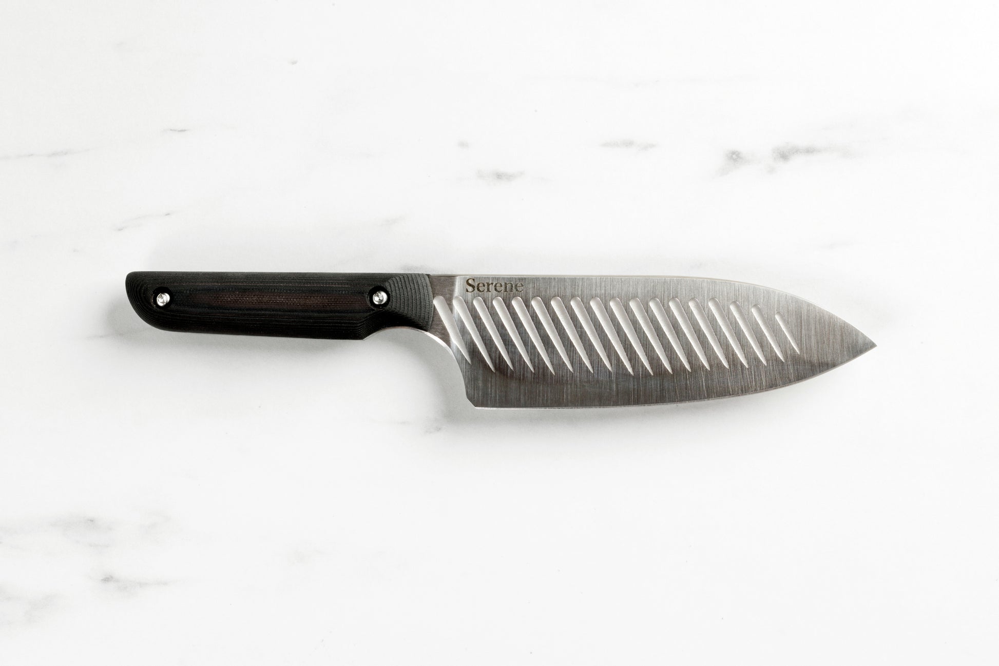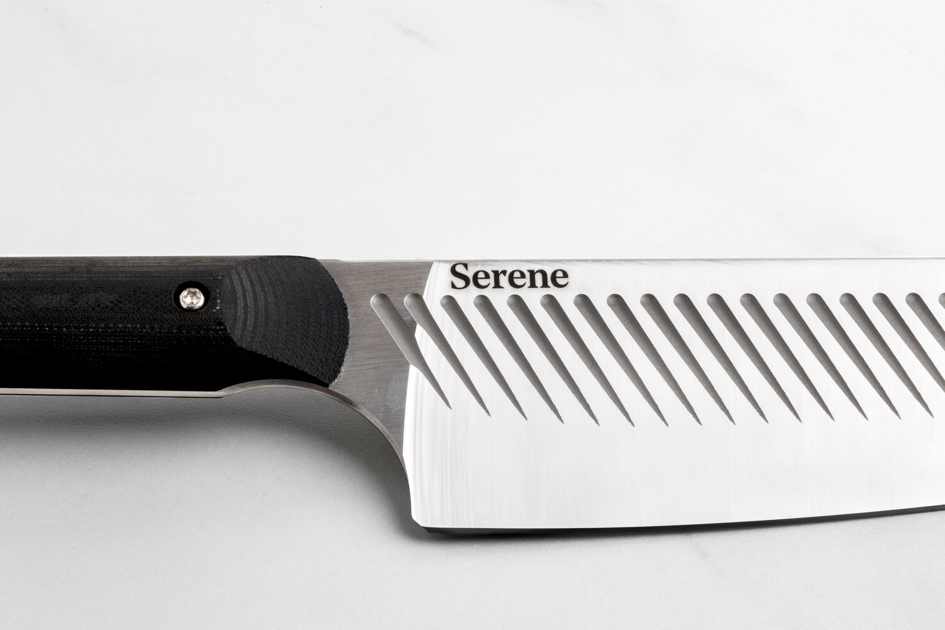 The Fulton Pair is all you need. Includes The Fulton 8" Chef knife, the 6" Petty, and leather sheath for each. Features an all black slip resistant Norplex rubberized G10-handle. A perfect combination of the Serene Kitchen Company's CPM Magnacut 8" Chef knife and 6" Petty Knife have become one of the most versatile tools in your kitchen. Produced exclusively in the USA, these are the Next Generation of kitchen cutlery. From the rubberized G10 handle to it's pairing conducive tip and smooth chamfered edges, every detail of the Serene line has been meticulously curated to give users the next evolution in cutlery to power their passion for cooking.