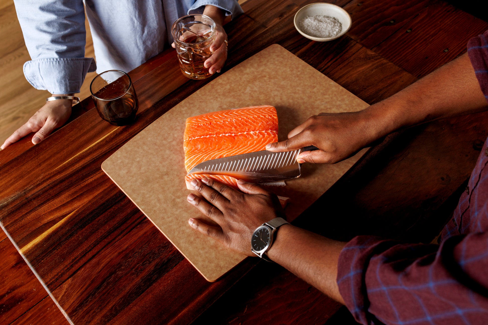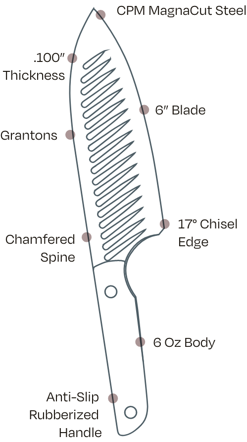 The Halsted Set is waiting for you! Includes The Halsted 8" Chef knife, the 6" Petty, and a leather sheath for each. Features an black and red slip resistant Norplex rubberized G10-handle. A perfect combination of the Serene Kitchen Company's CPM Magnacut 8" Chef knife and 6" Petty Knife, have become one of the most versatile tools in your kitchen. Produced exclusively in the USA, these are the Next Generation of kitchen cutlery. From the rubberized G10 handle to it's pairing conducive tip and smooth chamfered edges, every detail of the Serene line has been meticulously curated to give users the next evolution in cutlery to power their passion for cooking.