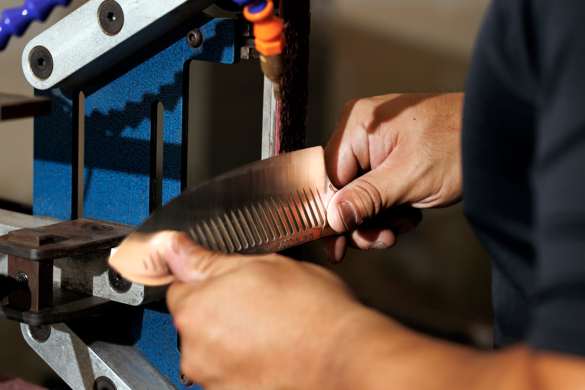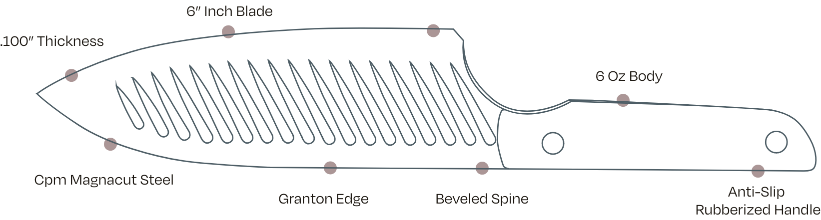 The Serene blade is made from CPM Magancut Supersteel known for it's excellent edge retention. Each blade is hand sharpened to a 17-degree chiseled edge.
